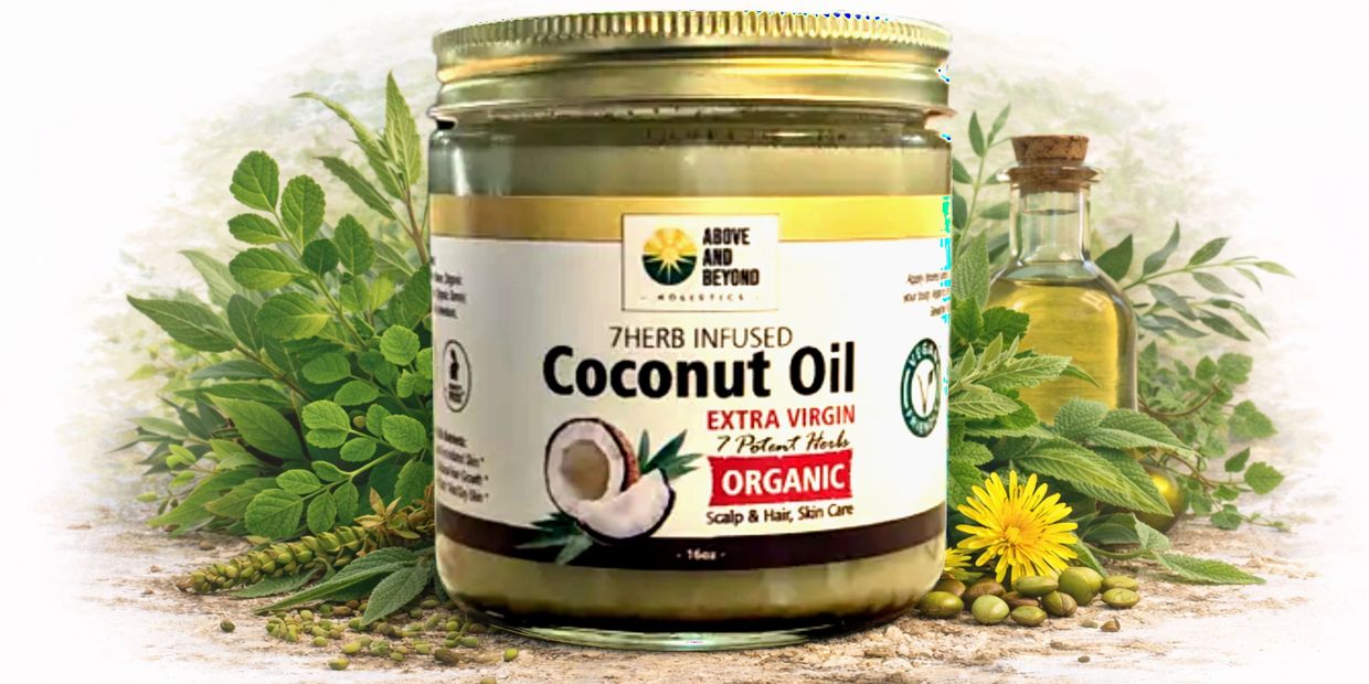 Unlike plain coconut oil, 7Herb is slow-infused with seven traditionally used botanicals chosen for scalp balance, skin comfort, and daily conditioning support.